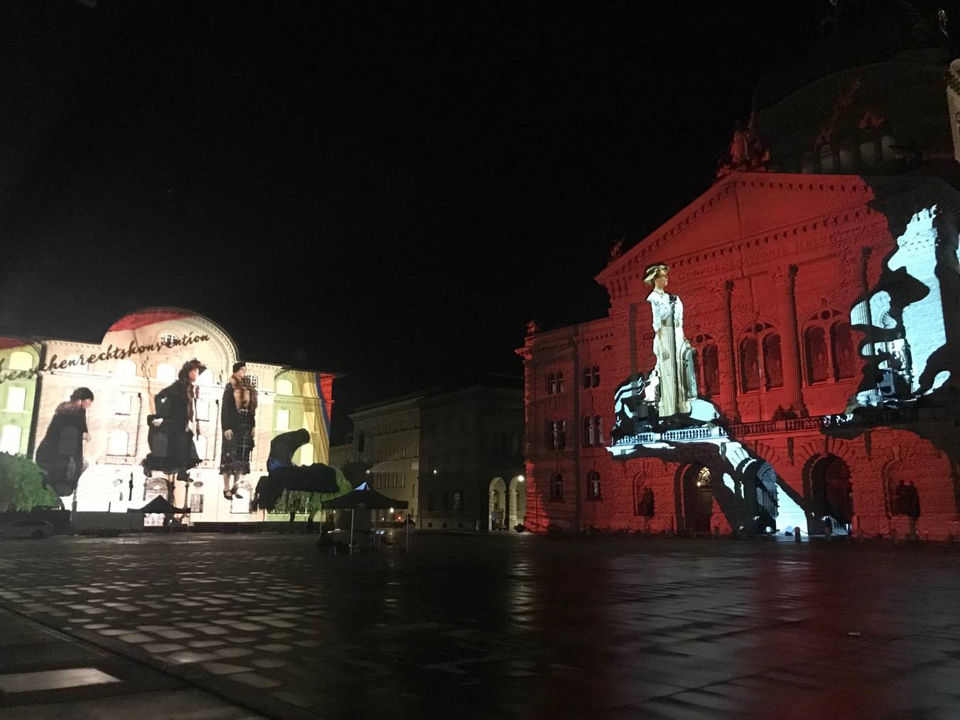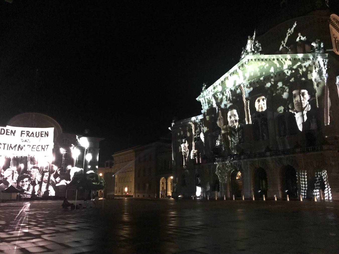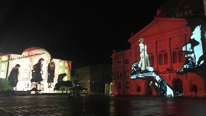 Vor gut 50 Jahren war das Frauenstimmrecht in der Schweiz eingeführt worden. Die Frauen, die jahrzehntelang dafür gekämpft haben, sollen mit einer Hommage beim Bundesplatz geehrt werden. Derzeit wird die Technik für die Panorama-Projektion aufgebaut.